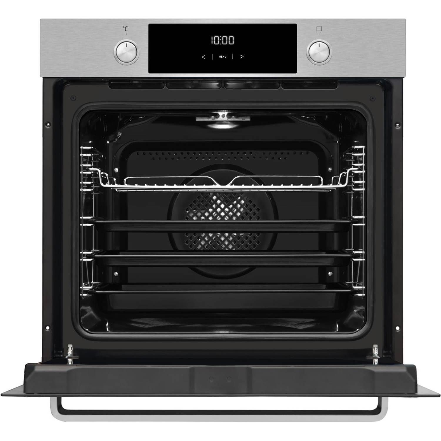 Rummelig indbygningsovn med en kapacitet på 77 liter og forskellige ovnfunktioner. Læs hele beskrivelsen