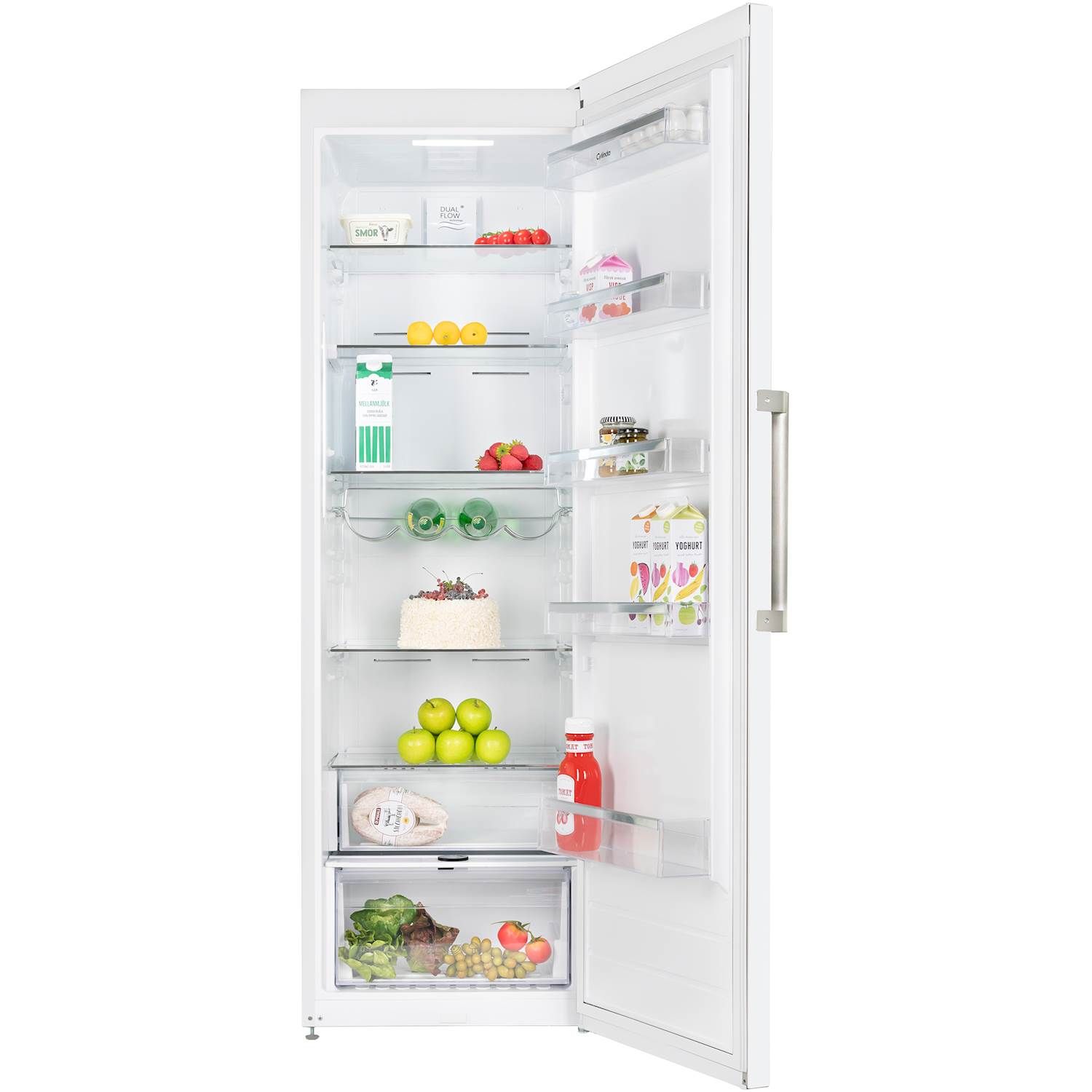 Rummeligt køleskab fra Cylinda med stor grøntsagsskuffe, Dual Flow teknologi og kølevolumen på 390 liter. Læs hele beskrivelsen