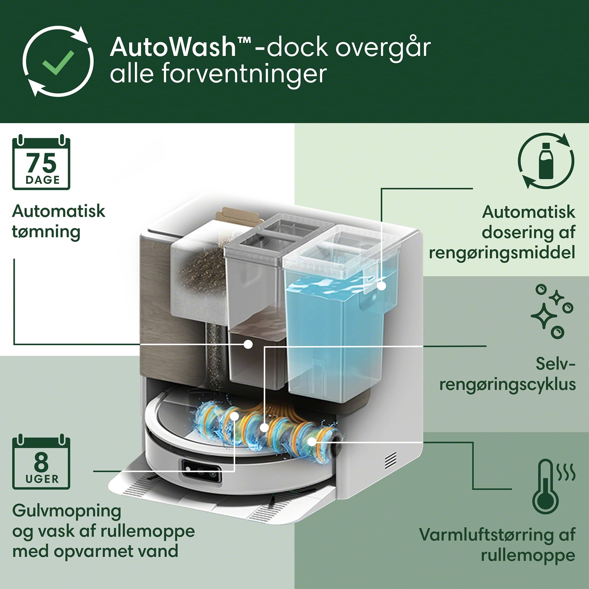 Sig farvel til støvskyer. AutoEmpty™-docken tømmes automatisk og indfanger støv og snavs helt, så du får 75 dage med håndfri rengøring.