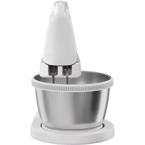 Electrolux 500-serien ESM4W elektrisk mixer med 500W motor, 5 hastigheder + turbo, 3,5 L roterende skål og tilbehør i rustfrit stål.