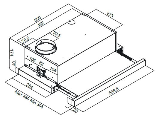Smart emhætte gemmes væk i et overskab, og som kan trækkes ud ved brug. Den kan betjenes med 3 hastigheder. Læs hele beskrivelsen